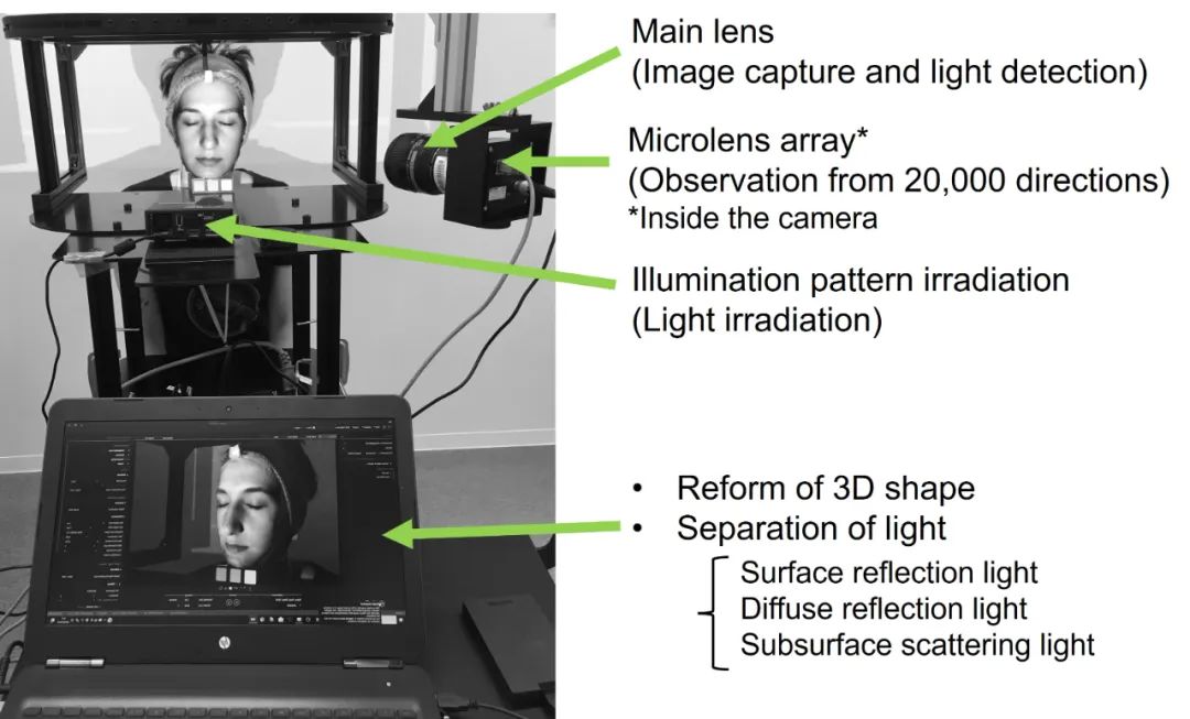 然而,在与成像科学领域的世界领导者挪威科技大学的共同研究后,资生堂表示已成功开发了世界上第一个皮肤3D光学分析系统,该系统既可以测量表面反射光和漫反射光以及三维面部形状,又可以更详细地分离穿透皮肤的光——次表面散射光。
