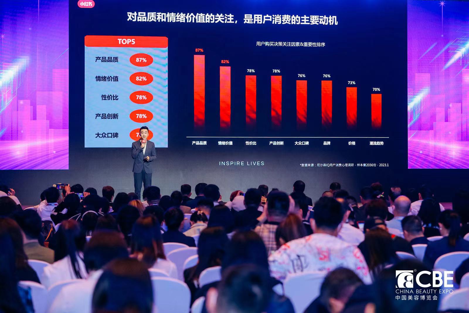具体到美妆类目,美妆内容同比增长179%,大盘日均搜索查询3亿,大盘日均笔记发布300万+,美妆日均搜索指数同比增长25%,美妆日均笔记指数同比增长70%。雷藏强调,对品质和情绪价值的关注,是用户消费的主要动机,用户购买决策关注因素中,产品品质占87%,情绪价值占82%,性价比占78%,产品创新占78%,大众口碑占76%。